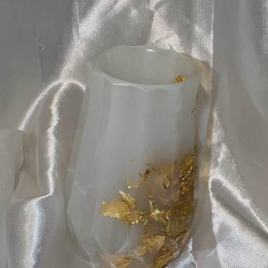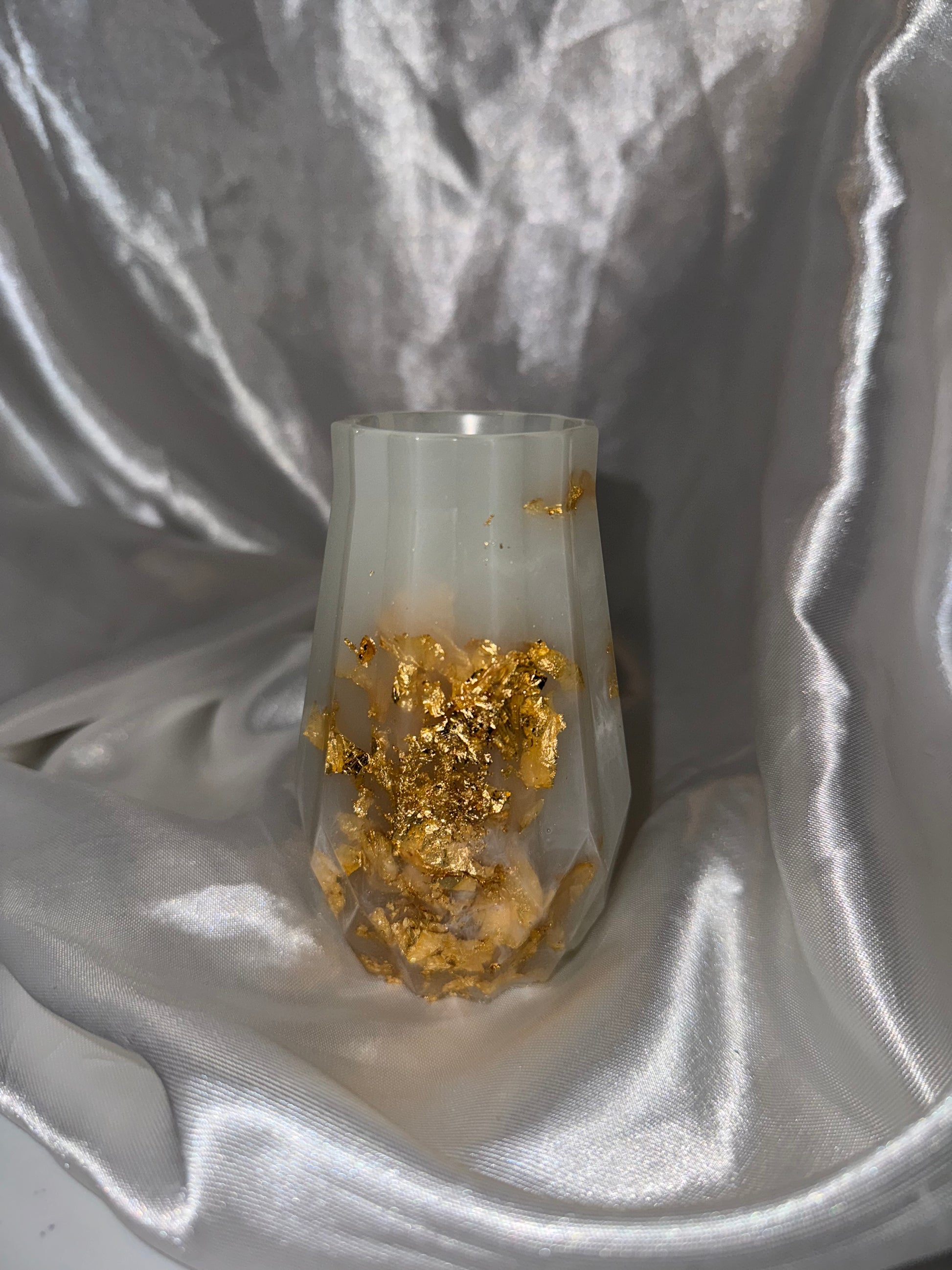 Marbled resin vase (white & clear) with gold foil along the front & side